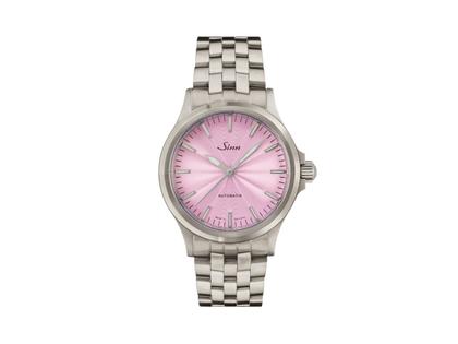 Sinn Spezialuhren 556 Malve Automatik Edelstahl 38,5mm rosa Zifferblatt Metallband limitiert