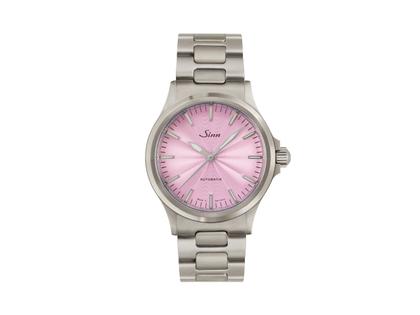 Sinn Spezialuhren 556 Malve Automatik Edelstahl 38,5mm rosa Zifferblatt Metallband limitiert