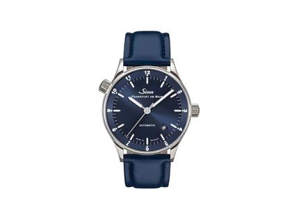 Sinn Spezialuhren 6068 B Frankfurter Finanzplatzuhr Automatik Edelstahl 38,5mm blaues Zifferblatt blaues Lederband