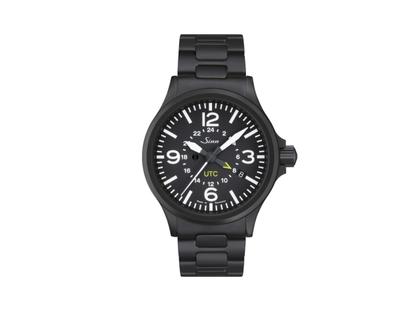 Fliegeruhr 856 S UTC, Automatik, Kaliber SW330, rund, Edelstahl tegimentiert, Durchmesser 40 mm, Höhe 11 mm, schwarzes Zifferblatt, Zeiger und Ziffern mit nachtleuchtender Spezialfarbe, verschraubte Krone, Magnetfeldschutz bis 80.000 A/m, schwarzes Armband Edelstahl mit TEGIMENT-Technologie veredelt und damit besonders kratzfest, Faltschließe, Saphirglas beidseitig entspiegelt, verschraubter Boden, 20 bar wasserdicht, unterdrucksicher