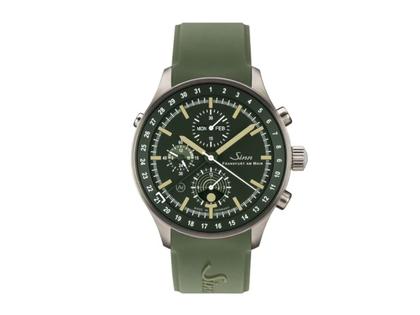 Sinn Spezialuhren Jagduhr 3006 Chronograph Automatik Edelstahl 44mm grünes Zifferblatt grünes Silikonband