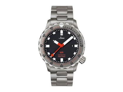 Sinn Spezialuhren U1 Automatik U-Boot-Stahl 44mm schwarzes Zifferblatt Metallband