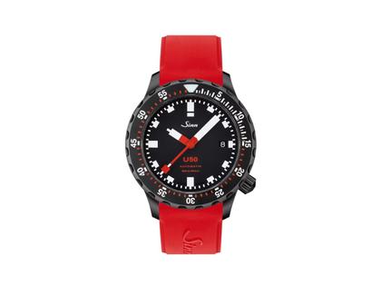 Sinn Spezialuhren U50 S Taucheruhr Automatik U‑Boot‑Stahl 41mm schwarzes Zifferblatt rotes Silikonband
