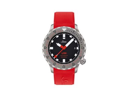Sinn Spezialuhren U50 Taucheruhr Automatik U-Boot-Stahl 41mm schwarzes Zifferblatt rotes Silikonband
