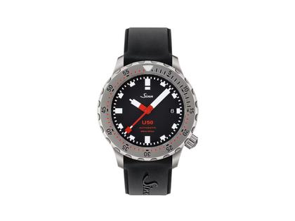 Sinn Spezialuhren U50 Taucheruhr Automatik U-Boot-Stahl 41mm schwarzes Zifferblatt schwarzes Silikonband