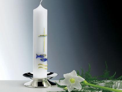Taufgeschenk: Taufleuchter, 925/- Silber, Durchmesser 13cm mit weißer Taufkerze