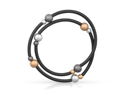 Armschmuck aus Edelstahl ummantelt mit schwarzem Kautschuk, Aluminiumkugeln in Gold, Silber und Grau, ohne Verschluss