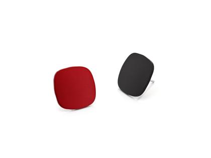 Ohrstecker aus eloxiertem Aluminium mit roter und schwarzer Form, mit Ohrmutter