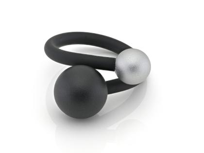 Ring aus schwarzem Kautschuk mit Aluminium Kugel groß schwarz Ø 12mm, Kugel klein silber Ø 8mm, gebürstet