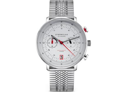 Der Hamburg Chrono silber ist der vielseitige Klassiker, der nie aus der Mode kommt. Klare Linien und das weiße Zifferblatt verleihen eine zeitlose Eleganz. Details wie der rote Chronozeiger sowie das rote Datumsfenster geben eine sportliche Note. Wer einen stilvollen und vielseitigen Chronographen im klassischen Bauhaus-Design sucht, der ist bei dem STERNGLAS Hamburg Chrono silber genau richtig.