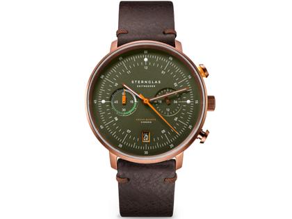 Sternglas Hamburg Chrono Quarz Edelstahl Bronze-PVD 42mm grünes Zifferblatt braunes Lederband