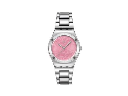 Swatch Irony Lady Blossom Time Petal Charm Quarz Edelstahl 33mm rosa Zifferblatt Metallband