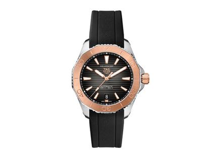 Bei dieser markanten TAG Heuer Aquaracer trifft Luxus auf extreme Widerstandsfähigkeit. Die verschraubte Krone und der Lünetteneinsatz aus 750/- 5N Rotgold kontrastieren wunderschön mit dem rauchschwarzen Zifferblatt, das mit gut ablesbaren Zeigern und Markierungen verziert ist. Eine Uhr, die sich jedem Abenteuer stellt.
