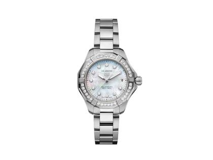 TAG Heuer Aquaracer Professional 200 Solargraph Quarz Edelstahl 34mm weißes Perlmutt-Zifferblatt mit Brillanten Metallband