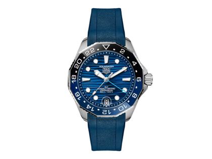 TAG Heuer Aquaracer Professional 300 GMT Automatik Edelstahl 42mm blaues Zifferblatt blaues Kautschukband
