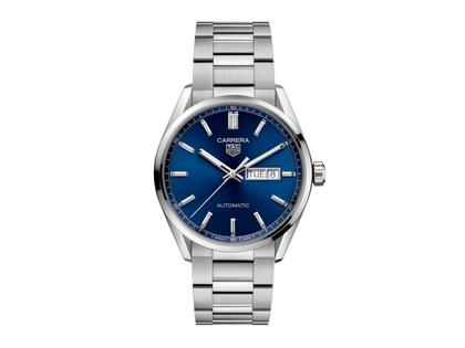 TAG Heuer Carrera Day-Date Automatik Edelstahl 41mm blaues Zifferblatt Metallband