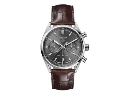 TAG Heuer Carrera Chronograph Automatik Edelstahl 42mm graues Zifferblatt braunes Lederband