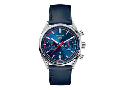 Das charakteristische blaue Carrera-Zifferblatt weist ein zeitloses Design mit einem orangefarbenen Farbverlauf auf dem Höhenring auf, der an einen Tacho erinnert. Das prestigeträchtige 42-mm-Gehäuse aus fein gebürstetem Edelstahl ist bis zu einer Tiefe von 100 Metern wasserdicht und schützt das leistungsstarke, hauseigene Calibre Heuer 02. Bereit, Grenzen zu überwinden. Das hochwertige Armband aus blauem Kalbsleder ist ein kühnes Statement für Stärke und Eleganz.