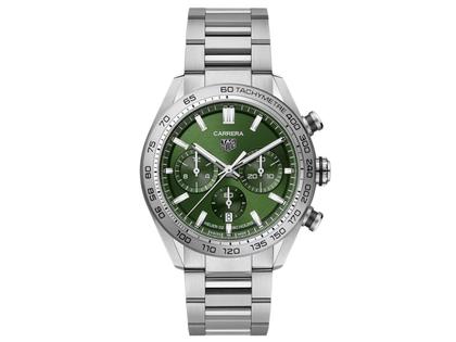 TAG Heuer Carrera Chronograph Automatik Edelstahl 44mm grünes Zifferblatt Metallband