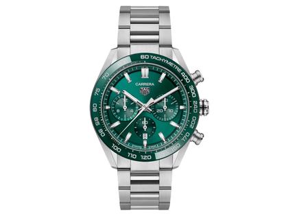 TAG Heuer Carrera Chronograph Automatik Edelstahl 44mm grünes Zifferblatt Metallband