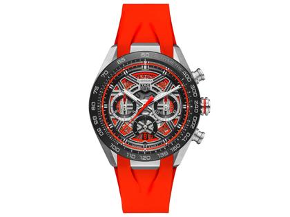 TAG Heuer Carrera Chronograph Extreme Sport Automatik Titan 44mm skelettiertes Zifferblatt oranges Kautschukband