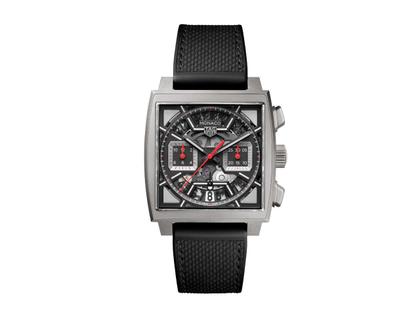 TAG Heuer Monaco Chronograph Automatik Titan 39mm skelettiertes Zifferblatt schwarzes Kautschuk-Lederband
