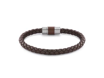 Armband aus 6-fach geflochtenem braunen Leder, Edelstahl-Keramikverschluss mit Safe Lock System (Schiebeverschluss), Durchmesser 6,0 mm, 21,0 cm lang - auch andere Längen auf Anfrage erhältlich