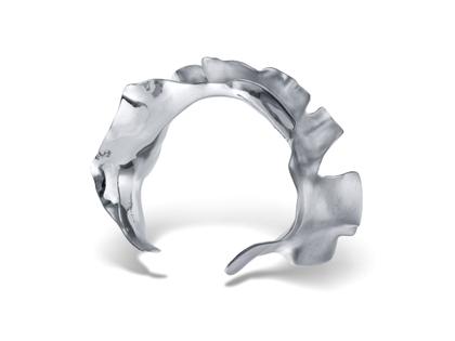 Armspange aus 950/- Silber rhodiniert, mattiert und poliert, geschwungene asymetrische Form, 1,0 - 4,5 cm im Verlauf breit, Größe S/M