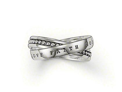 Damenring, 925/- Sterlingsilber, poliert, mit Gravur "Love Faith Hope", Breite: 1,3 cm
