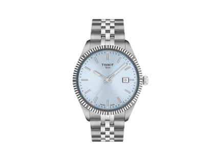 Die Tissot Ballade ist die neu aufgelegte, weiterentwickelte Version eines Modells, das tief in der Tissot Historie verankert ist. Markante Details – allen voran die kannelierte Lünette – verleihen der Ballade ihre außergewöhnliche Identität. Diese Uhr geht mit der Zeit und bleibt ihrer Designsprache dennoch treu. Als vielseitige Bereicherung hat sie ihren festen Platz in der Tissot Kollektion. Diese Ausführung der Tissot Ballade 40mm besitzt ein präzises Quarzwerk, ein 316L-Edelstahlgehäuse sowie kratzfestes, entspiegeltes Saphirglas. Dieses liegt schützend über dem eisblauen Zifferblatt mit Sonnenstrahl-Effekt und einer Datumsanzeige bei 3 Uhr. Das ebenso massive wie flexible 316L-Edelstahlarmband verfügt über eine Butterfly-Faltschließe mit Drückern und hält die Uhr sicher am Handgelenk. Dank Schnellwechselsystem lässt es sich ganz einfach und werkzeuglos gegen ein anderes passendes Armband austauschen.