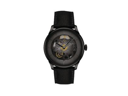 Tissot Chemin des Tourelles Squelette Powermatic 80 Automatik Edelstahl PVD-Schwarz 39mm skelettiertes Zifferblatt schwarzes Lederband