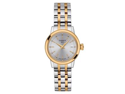 Tissot Classic Dream Lady Quarz Edelstahl PVD-Gelbgold 28 mm silbernes Zifferblatt bicolor Metallband