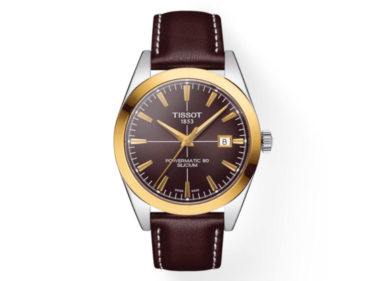 Tissot Gentleman Powermatic 80 Silicium Edelstahl Zifferblatt braun Lederband braun