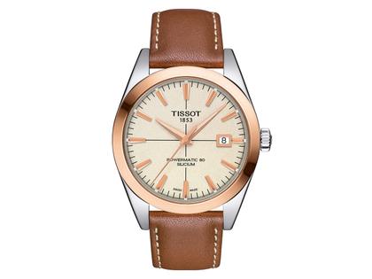 Tissot Gentleman Powermatic 80 Silicium Edelstahl PVD rosé beige Lederband