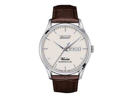 Tissot Heritage Visodate Powermatic 80 Edelstahl silbernes Zifferblatt braunes Lederband