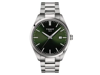 Dieses Tissot PR 100 Modell verfügt über ein 40 Millimeter messendes 316L-Edelstahlgehäuse und ein präzises Swiss Made Quarzwerk mit Endanzeige der Batterielebensdauer. Sein grünes Zifferblatt mit Stabindizes und Datumsanzeige liegt gut geschützt unter kratzfestem Saphirglas. Das 316L-Edelstahlarmband mit Schnellwechselsystem erlaubt einen einfachen, werkzeuglosen Austausch.