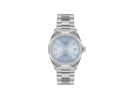 Mitte der 2000er-Jahre erstmals vorgestellt, sorgte die PRC 100 mit ihrem markanten Design für Aufsehen und eroberte einen festen Platz in der Kollektion. Heute kehrt sie mit dem wegweisenden Lightmaster Solar-Quarzuhrwerk zurück und nutzt die Kraft der Photovoltaik – Sekunde für Sekunde. Mit seinem 34 Millimeter messenden 316L-Edelstahlgehäuse und der markanten, zwölfeckigen Lünette strahlt dieses Tissot PRC 100 Solar Quartz 34mm Modell Selbstbewusstsein aus. Unter dem flachen, sehr kratzfesten Saphirglas liegt ein solarbetriebenes Quarzwerk, das sich sowohl bei natürlichem als auch bei künstlichem Licht mühelos auflädt. Erreicht der Akkustatus ein niedriges Level, bleibt dies dank der End-of-Energy-Anzeige nicht unbemerkt. Die Uhr verfügt über ein Armbandschnellwechselsystem und einen 18 mm-Bandanstoß, sodass ihr Träger aus einer Vielzahl passender Tissot Armbänder wählen und diese einfach und werkzeuglos selbst austauschen kann. Diese Tissot PRC 100 Solar Quartz 34mm Ausführung besitzt ein hellblaues Zifferblatt mit Datumsanzeige. Das ebenso massive wie flexible 316L-Edelstahlarmband mit Butterfly-Faltschließe mit Drückern hält die Uhr sicher am Handgelenk.