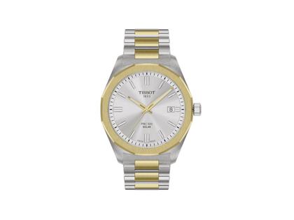 Tissot PRC100 Solar Quarz Edelstahl Gelbgold-PVD 39mm silbernes Zifferblatt Metallband