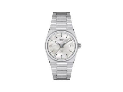 Tissot PRX Quarz Edelstahl 35mm weißes Perlmutt-Zifferblatt Metallband