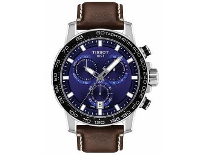 Tissot Supersport Quarz Chronograph Edelstahl blaues Zifferblatt braunes Lederband