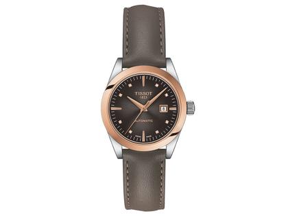 Tissot T-My Lady Damenuhr Automatic Edelstahl Rosegold braunes Zifferblatt braunes Lederband mit Diamanten