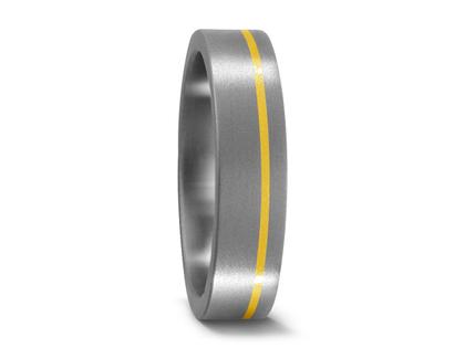 Titan mit 750/- Gelbgoldstreifen, 5 mm breit, schlichter Trauring, ideal auch als Partnerring oder Verlobungsring