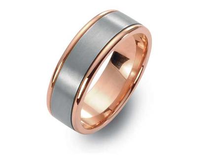Titan mattiert mit 750/- Rotgold poliert an den Seiten und innen, 6,5 mm breit, schlichter Trauring, ideal auch als Partnerring oder Verlobungsring