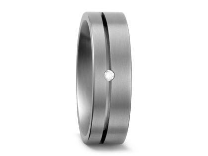 Titan mattiert, 6 mm breit, 1 Einschnitt seitlich, 1 Brillant 0,02 ct W si, schlichter Trauring, ideal auch als Partnerring oder Verlobungsring
