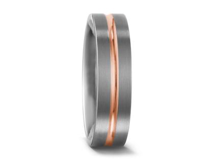 Ring aus Titan, mattiert, mit poliertem Mittelstreifen 750/- Rotgold, 8,0 mm breit, außen gerade, innen bombiert, schlichter Trauring, ideal auch als Partnerring oder Verlobungsring [alternativ auch mit Gelbgold erhältlich]