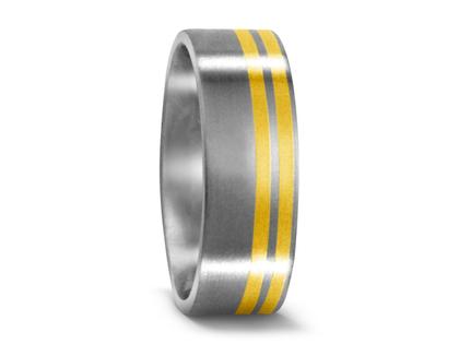 Titan mattiert mit zwei Streifen 750/- Gelbgold mattiert seitlich, 6,5 mm breit, schlichter Trauring, ideal auch als Partnerring oder Verlobungsring