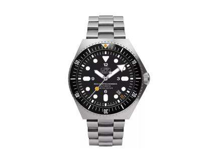 Automatikwerk Seiko NH35A, poliertes Edelstahlgehäuse im Durchmesser von 42,0 mm, Höhe 15,0 mm, einseitig drehbare Edelstahl-Lünette mit schwarzer Keramik-Einlage, schwarzes Zifferblatt, Datumsanzeige zwischen 4 und 5 Uhr, silberfarbener Stunden- und Minutenzeiger mit weißer Super-LumiNova Leuchtmasse, silberfarbener Sekundenzeiger mit orangefarbenem Super-Lumiova Leuchtpunkt, silberfarbene Indizes mit weißer Super-LumiNova Leuchtmasse, weiße Minüterie auf schwarzem Zifferblatt-Außenring, poliertes mehrgliedriges Edelstahlarmband mit Faltschließe, Edelstahl-Gehäuseboden, Saphirglas, 20 bar wasserdicht - limitiert auf 499 Exemplare