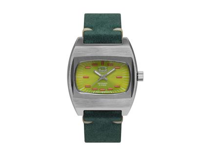 UMF Ruhla TV Gehäuse Handaufzug Edelstahl 41mm grünes Zifferblatt grünes Lederband limitiert