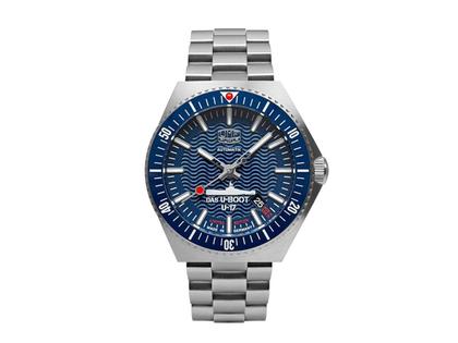 UMF Ruhla U-Boot U-17 Automatik Edelstahl 43mm blaues Zifferblatt Metallband limitiert
