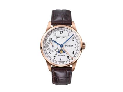 Union Glashütte 1893 Johannes Dürrstein Edition Handaufzug Mondphase Rosegold 41mm weißes Zifferblatt braunes Lederband limitiert